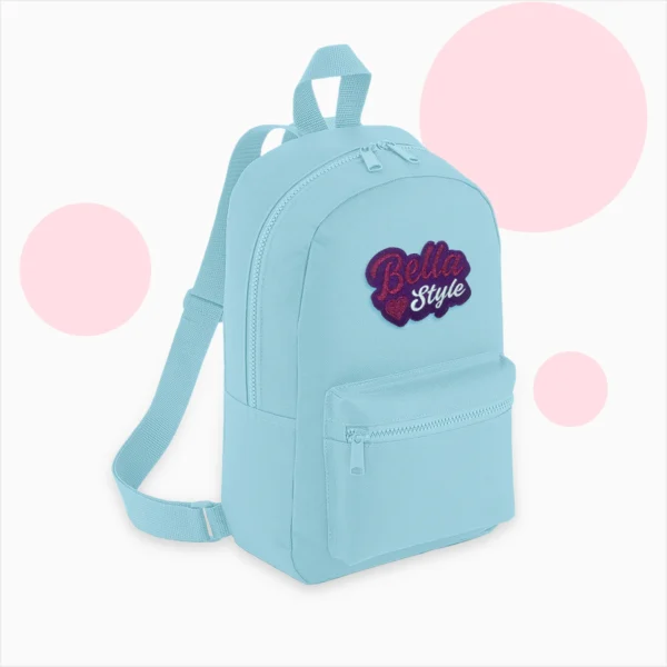 MAŁY PLECAK – BROKATOWY HAFT BELLA STYLE – PUDROWY NIEBIESKI + GRATIS KARTA Z AUTOGRAFEM BELLI!