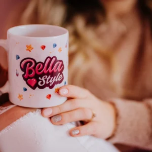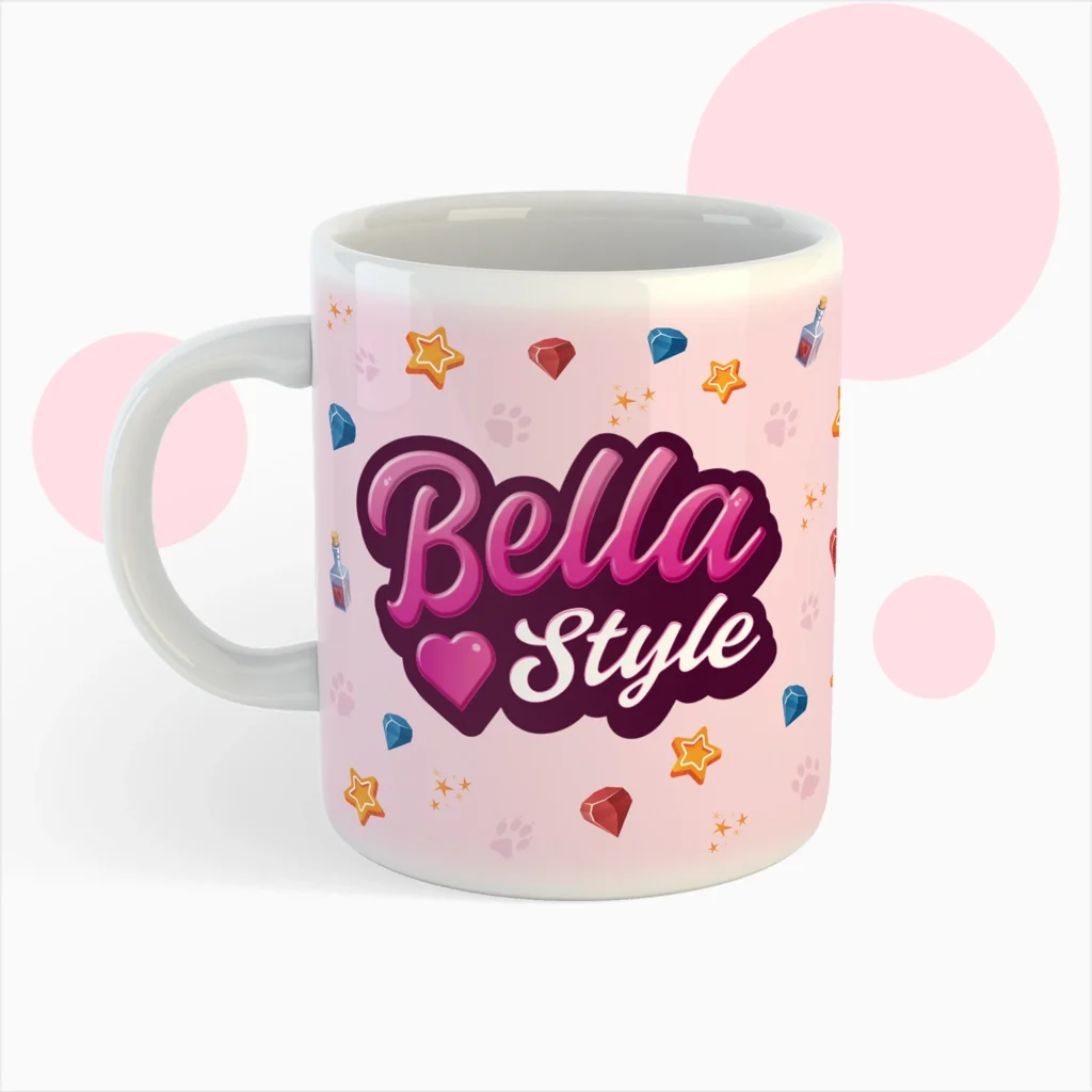Przed Wami kubek dla największych fanek Belli! Jego pojemność wynosi 330 ml, a na białej powierzchni widnieje tło z ulubionym kolorem naszej bohaterki – pudrowym różem. Ponadto znajduje się na nim napis „Bella Style” o nieco ciemniejszym odcieniu oraz małe kolorowe symbole ściśle związane z Bellą. Mamy nadzieję, że będzie Ci długo służył!